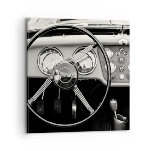Glasbild - Bild auf glas - Schwarz-weißes Oldtimer-Interieur - 70x100cm - Ein Sammlertraum - Moderne Wanddekoration für Wohnzimmer und Schlafzimmer ARTTOR