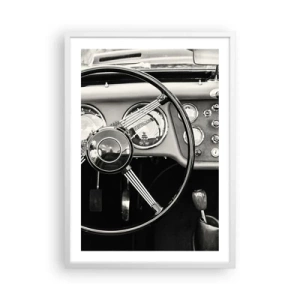 Poster - Der Innenraum eines Oldtimers im monochromen Stil - 50x70cm - Ein Sammlertraum - Moderne Wanddekoration für Wohnzimmer und Schlafzimmer ARTTOR