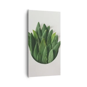 Glasbild - Bild auf glas - Eine Komposition aus grünen Blättern auf hellem Hintergrund - 80x120cm - Ungebremste Neugier - Moderne Wanddekoration für Wohnzimmer und Schlafzimmer ARTTOR