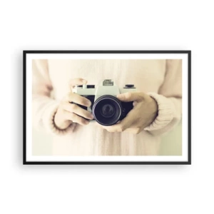 Poster in einem schwarzem Rahmen - Retro-Kamera in den Händen vor hellem Hintergrund gehalten - 100x70cm - Um mehr zu sehen ... - Moderne Wanddekoration für Wohnzimmer und Schlafzimmer ARTTOR