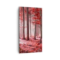 Bild auf Leinwand - Leinwandbild - Ein atemberaubender Wald in roten Farbtönen mit Lichtstrahlen, die durch die Bäume dringen - 80x120cm - Rot ist genauso schön - Moderne Wanddekoration für Wohnzimmer und Schlafzimmer ARTTOR