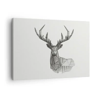 Bild auf Leinwand - Leinwandbild - Geometrisches Bild eines Hirsches im minimalistischen Schwarz-Weiß-Stil - 70x50cm - Ein Hirsch im kubistischen Stil - Moderne Wanddekoration für Wohnzimmer und Schlafzimmer ARTTOR