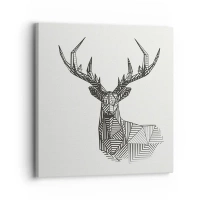 Bild auf Leinwand - Leinwandbild - Geometrisches Bild eines Hirsches im minimalistischen Schwarz-Weiß-Stil - 50x70cm - Ein Hirsch im kubistischen Stil - Moderne Wanddekoration für Wohnzimmer und Schlafzimmer ARTTOR
