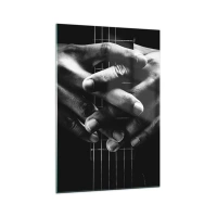 Glasbild - Bild auf glas - Hände auf einer Gitarre in einem monochromen Ton gefaltet - 80x120cm - Gebet des Künstlers - Moderne Wanddekoration für Wohnzimmer und Schlafzimmer ARTTOR
