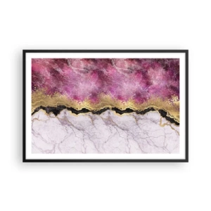 Poster in einem schwarzem Rahmen - Abstrakter Marmor in Rosatönen mit goldenen Akzenten - 100x70cm - An der Grenze - Moderne Wanddekoration für Wohnzimmer und Schlafzimmer ARTTOR