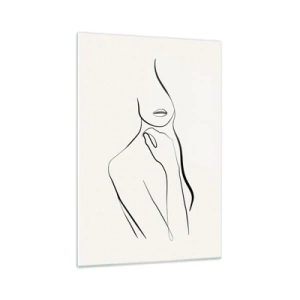Glasbild - Bild auf glas - Eine minimalistische Skizze der Silhouette einer Frau vor hellem Hintergrund. - 80x120cm - Eine Welle der Melancholie - Moderne Wanddekoration für Wohnzimmer und Schlafzimmer ARTTOR