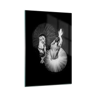 Glasbild - Bild auf glas - Ein Schwarzweißbild von zwei Ballerinas in einer dynamischen Pose. - 80x120cm - Jin und Jang – perfekte Balance - Moderne Wanddekoration für Wohnzimmer und Schlafzimmer ARTTOR