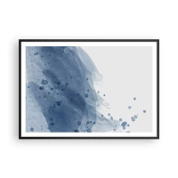 Poster in einem schwarzem Rahmen - Abstrakte Flecken und Streifen in Blautönen - 100x70cm - Blauer Tüll - Moderne Wanddekoration für Wohnzimmer und Schlafzimmer ARTTOR