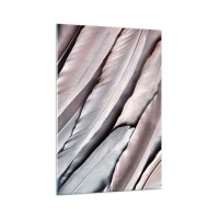 Glasbild - Bild auf glas - Zarte Federn in dezenten Grau- und Beigetönen - 80x120cm - In rosa Silber - Moderne Wanddekoration für Wohnzimmer und Schlafzimmer ARTTOR