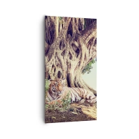 Glasbild - Bild auf glas - Ein Tiger ruht unter einem ausladenden Baum - 80x120cm - Blick aus dem Buch Genesis - Moderne Wanddekoration für Wohnzimmer und Schlafzimmer ARTTOR
