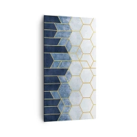 Bild auf Leinwand - Leinwandbild - Geometrisches Muster in Gold- und Marineblautönen - 80x120cm - Komposition im synkopischen Rhythmus - Moderne Wanddekoration für Wohnzimmer und Schlafzimmer ARTTOR