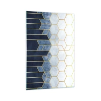 Glasbild - Bild auf glas - Geometrisches Muster in Gold- und Marineblautönen - 80x120cm - Komposition im synkopischen Rhythmus - Moderne Wanddekoration für Wohnzimmer und Schlafzimmer ARTTOR
