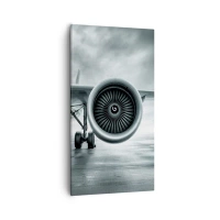 Bild auf Leinwand - Leinwandbild - Das Düsentriebwerk eines Flugzeugs auf dem Rollfeld - 120x80cm - Die Macht ist da! - Moderne Wanddekoration für Wohnzimmer und Schlafzimmer ARTTOR
