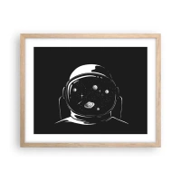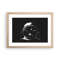 Poster in einem schwarzem Rahmen - Ein minimalistischer Astronautenhelm mit Blick ins Weltall - 100x70cm - Schöne Aussicht - Moderne Wanddekoration für Wohnzimmer und Schlafzimmer ARTTOR