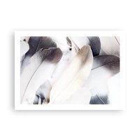 Poster - Nahaufnahme zarter Federn in Weiß- und Grautönen - 100x70cm - Fast engelhaft - Moderne Wanddekoration für Wohnzimmer und Schlafzimmer ARTTOR