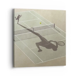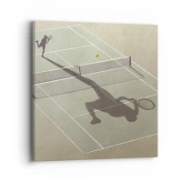 Bild auf Leinwand - Leinwandbild - Der Schatten eines Tennisspielers auf dem Platz während eines Tennisspiels - 100x70cm - Überwinde dich selbst - Moderne Wanddekoration für Wohnzimmer und Schlafzimmer ARTTOR