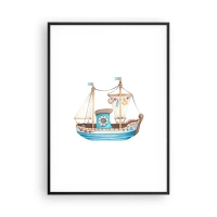 Poster in einem schwarzem Rahmen - Abbildung eines Schiffes in Pastellfarben auf weißem Hintergrund - 100x70cm - Ahoi, Abenteuer! - Moderne Wanddekoration für Wohnzimmer und Schlafzimmer ARTTOR
