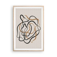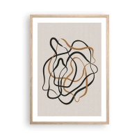 Poster in einem schwarzem Rahmen - Verworrene Linien in Schwarz und Gold auf hellem Hintergrund - 100x70cm - Alles ging schief - Moderne Wanddekoration für Wohnzimmer und Schlafzimmer ARTTOR