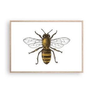 Poster in einem schwarzem Rahmen - Detaillierte Darstellung einer Biene auf weißem Hintergrund - 100x70cm - Schön und gut - Moderne Wanddekoration für Wohnzimmer und Schlafzimmer ARTTOR