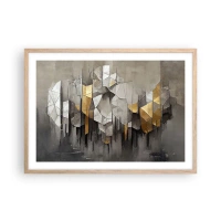 Poster in einem schwarzem Rahmen - Geometrische Abstraktion in Gold- und Grautönen - 100x70cm - Komposition aus Eis und Licht - Moderne Wanddekoration für Wohnzimmer und Schlafzimmer ARTTOR