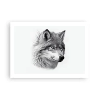Poster - Ein realistisches Porträt eines Wolfes in Grautönen. - 100x70cm - Alpha – ohne Zweifel - Moderne Wanddekoration für Wohnzimmer und Schlafzimmer ARTTOR