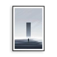 Poster in einem schwarzem Rahmen - Eine minimalistische Landschaft mit einer Silhouette neben einem rechteckigen Monolithen - 100x70cm - Chance oder Bedrohung? - Moderne Wanddekoration für Wohnzimmer und Schlafzimmer ARTTOR
