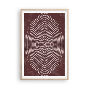 Poster in einem schwarzem Rahmen - Symmetrische Wellen in weißen Linien auf braunem Hintergrund - 100x70cm - Der Raum spricht - Moderne Wanddekoration für Wohnzimmer und Schlafzimmer ARTTOR