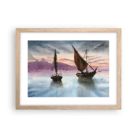 Poster in einem Rahmen aus heller Eiche - Abend am Hafen - 50x40 cm