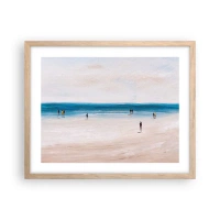Poster in einem schwarzem Rahmen - Ein Strand mit Menschen vor der Kulisse eines ruhigen Meeres - 100x70cm - Natürliches Bedürfnis - Moderne Wanddekoration für Wohnzimmer und Schlafzimmer ARTTOR