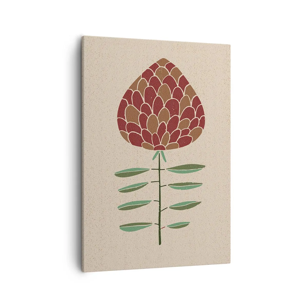 Bild auf Leinwand - Leinwandbild - Ein Pflanzenmuster in Grün- und Orangetönen - 50x70cm - Kampf zwischen Korallen und Grün - Moderne Wanddekoration für Wohnzimmer und Schlafzimmer ARTTOR