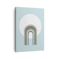 Bild auf Leinwand - Leinwandbild - Eine minimalistische Komposition mit einem Kreis und Linien auf pastellfarbenem Hintergrund. - 50x70cm - Unwiderstehliche Anziehungskraft - Moderne Wanddekoration für Wohnzimmer und Schlafzimmer ARTTOR